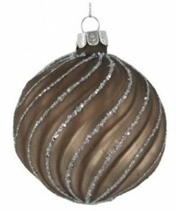 Χριστουγεννιατικη Μπαλα 10 Εκ.Γυαλινη Γκρι Καφε Με Glitter 3 Σχεδια (GLB-5560-10GR)