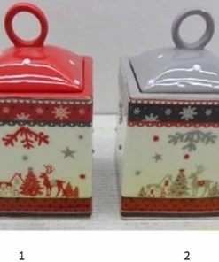 Χριστουγεννιάτικη Κεραμική Μπισκοτιέρα 12 εκ. 2 Χρώματα (04.YM17195-3)
