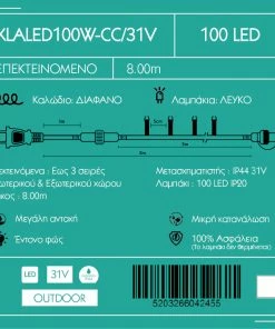 Χριστουγεννιατικα Φωτακια Led 100L Λευκο/Διαφανο Καλωδιο Με Επεκταση 31V (XLALED100W-CC/31V)