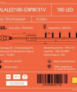 Χριστουγεννιατικα Φωτακια Led 180L Θερμο Λευκο/Πρασινο Καλωδιο Με Προγραμμα (XLALED180-GWW/31V)