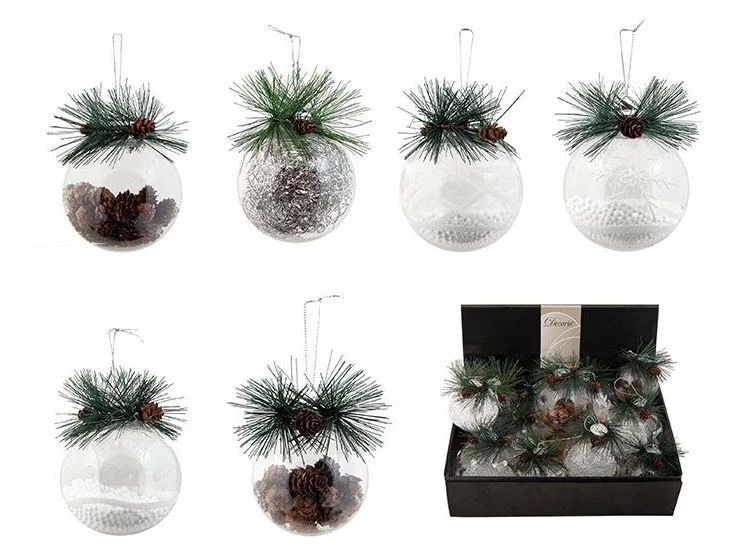 Χριστουγεννιάτικη μπάλα σε διάφορα σχέδια Διατίθεται με: •κουκουνάρια •χιονισμένα κλαδιά •φελιζόλ (διάφορα σχέδια εξωτερικά)Το προϊόν διατίθεται σε διάφορα σχέδια ή χρώματα. Η επιλογή γίνεται τυχαία. ΠΩΛΟΥΝΤΑΙ ΞΕΧΩΡΙΣΤΑ