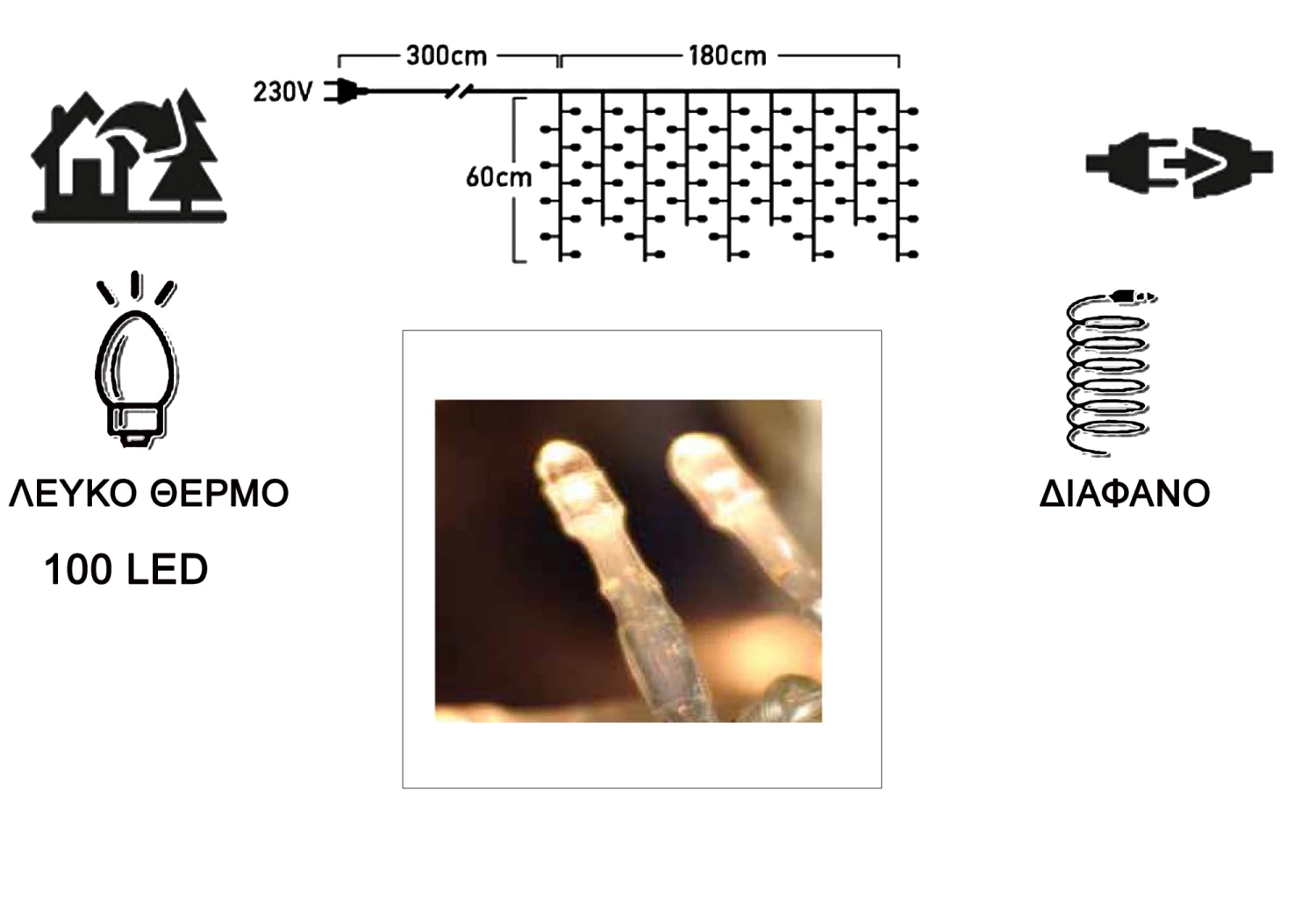 Χριστουγεννιατικα Φωτακια Led Κουρτινα Ασυμμετρη 100L Λευκο Θερμο/Διαφανο Καλωδιο Με Επεκταση 31V (XLALED100IWW/31V)