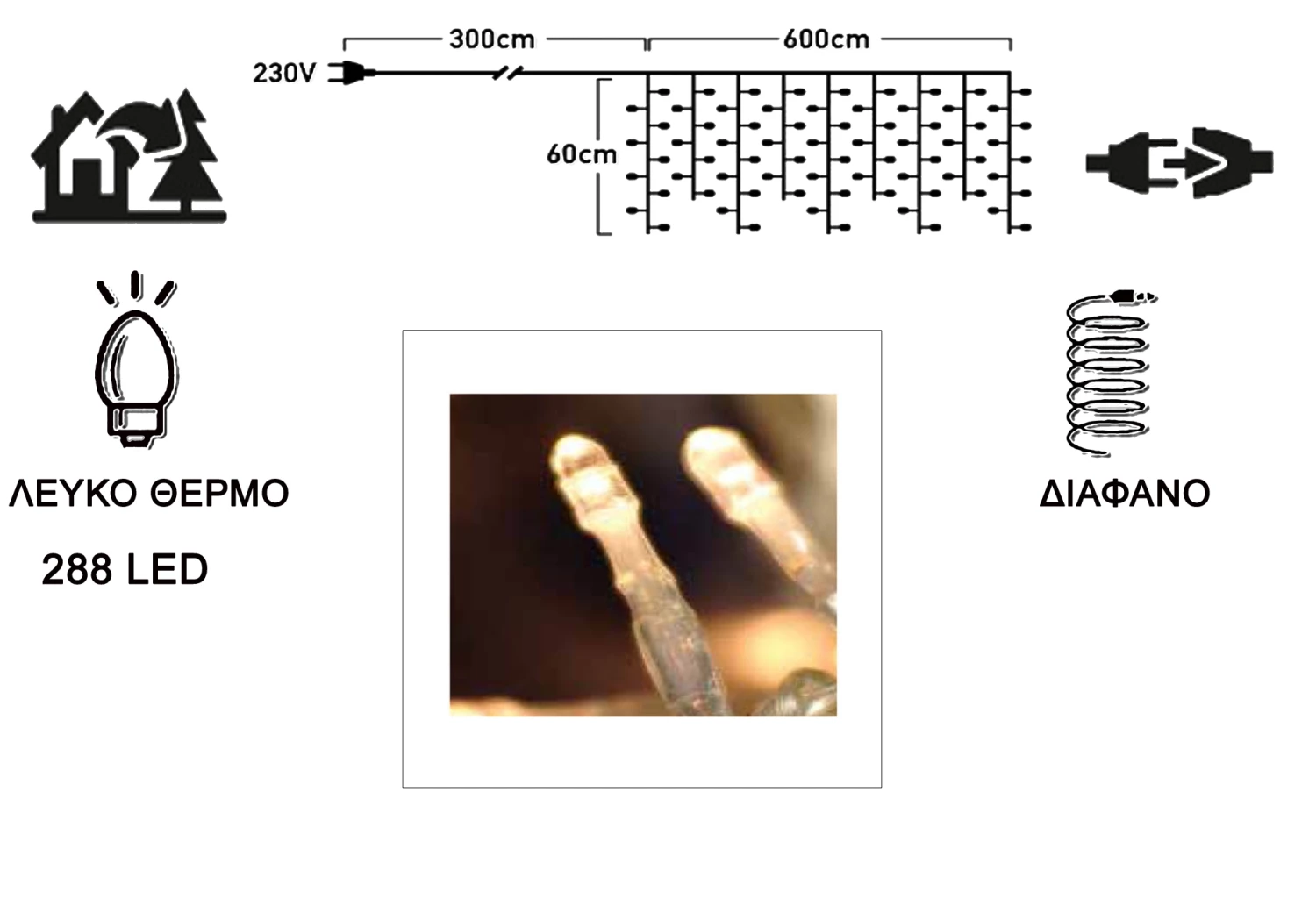 Χριστουγεννιατικα Φωτακια Led Βροχή Ασυμμετρη 288L Επεκτεινομενα Λευκο Θερμο/Διαφανο Καλωδιο 36V Μήκος: 6 μ. και 3 μέτρα καλώδιο (Συνολικό 9 μέτρα) Αριθμός Λαμπτήρων: 288 Χρώμα Καλωδίου: Διάφανο Χρώμα Λαμπτήρων: Λευκό θερμό Επεκτεινόμενο: Ναι Εξωτερικού χώρου: Ναι Πρόγραμμα: Όχι