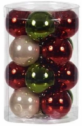 Χριστουγεννιάτικες Μπάλες Γυάλινες Σετ 16 Τεμαχίων Κόκκινο-Πράσινο-Σαμπανι 8 εκ. • Υλικό: Γυαλί • Χρώμα: Κόκκινο – Πράσινο – Σαμπανί • Διάμετρος: 8 εκ. • Συσκευασία: 16 τεμάχια