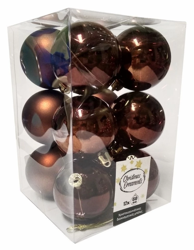 Χριστουγεννιάτικες Μπάλες Πλαστικές Σετ 12 Τεμαχίων Καφέ 6 Εκ. • Συσκευασία 12 Τεμαχίων ( 6 Ματ / 6 Γυαλιστερές) • Διάμετρος 6 εκ. • Υλικό: Πλαστικό