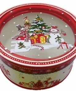 Χριστουγεννιάτικη Κεραμική Μπισκοτιέρα στρόγγυλη με καπάκι.