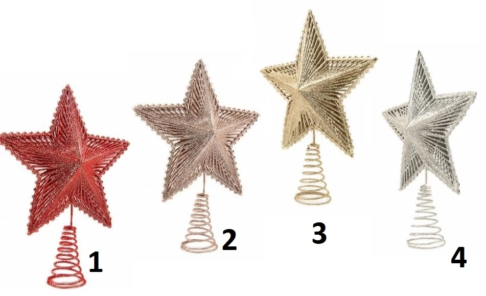 Χριστουγεννιάτικη Κορυφή Δέντρου Αστέρι με Glitter 24εκ. 4χρ Πλαστικό ντυμένο με glitter *Το κάθε σχέδιο πωλείται χωριστάΤο προϊόν διατίθεται σε διάφορα σχέδια ή χρώματα. Η επιλογή γίνεται τυχαία. ΠΩΛΟΥΝΤΑΙ ΞΕΧΩΡΙΣΤΑ