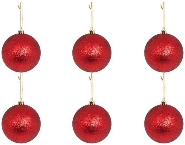 Χριστουγεννιάτικη μπάλα 6αρα γκλίτερ κόκκινη σετ 6 Σετ χριστουγεννιάτικες μπάλες με γκλίτερ σε κόκκινο χρώμα