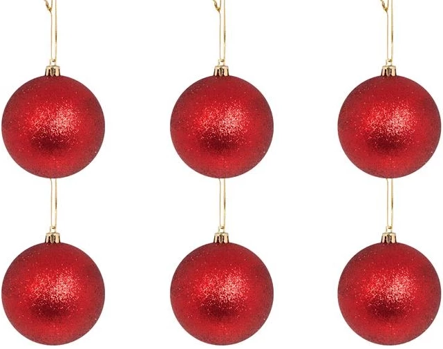 Χριστουγεννιάτικη μπάλα 8αρα γκλίτερ κόκκινη σετ 6