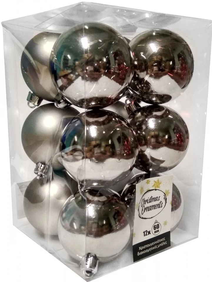 Χριστουγενιάτικη μπάλα πλαστική 6αρα σετ 12 τμχ γκρι Το σετ περιλαμβάνει 6 ματ και 6 γυαλιστερές μπάλες διαμέτρου 6 εκ