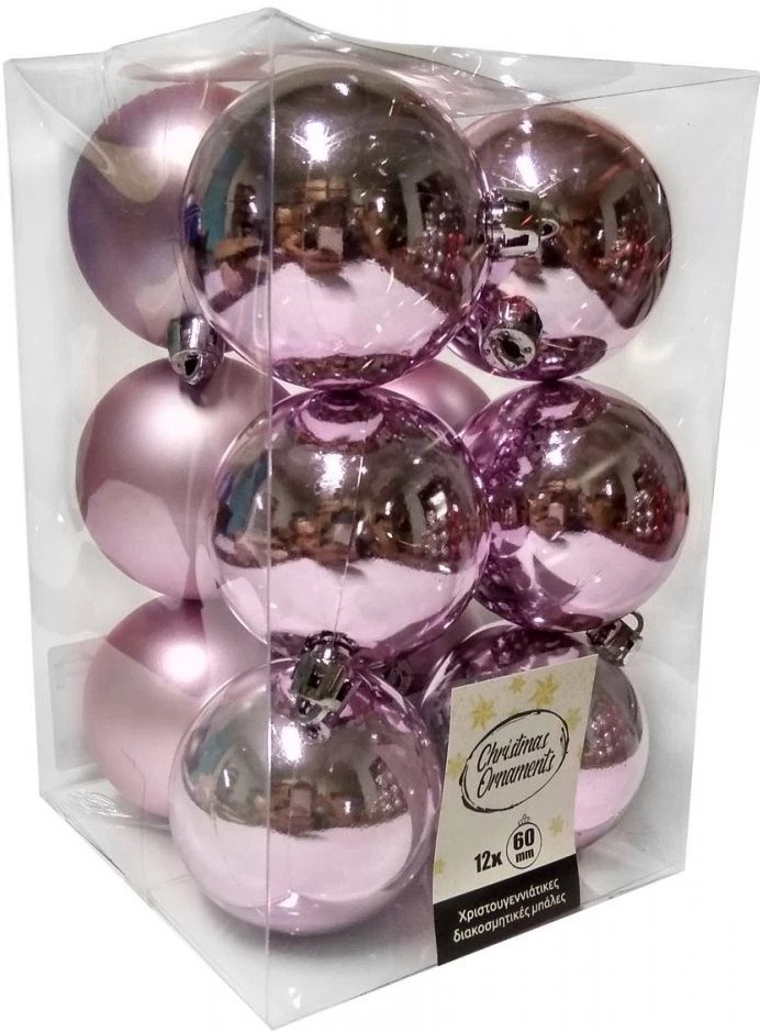 Χριστουγενιάτικη μπάλα πλαστική 6αρα σετ 12 τμχ ροζ Το σετ περιλαμβάνει 6 ματ και 6 γυαλιστερές μπάλες διαμέτρου 6 εκ