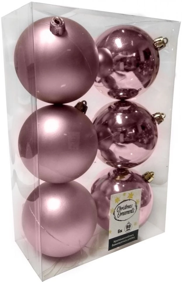 Χριστουγενιάτικη μπάλα πλαστική 8αρα σετ 6 τμχ ροζ Το σετ περιλαμβάνει 3 ματ και 3 γυαλιστερές μπάλες διαμέτρου 8 εκ