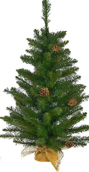 Χριστουγεννιάτικο δέντρο 60 εκατοστών με κουκουνάρια και βάση με λινάτσα.