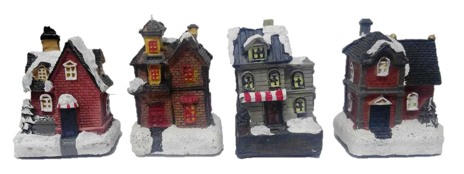Χριστουγεννιατικο Διακοσμητικο Σπιτακι Πολυρεζινης Με Φως 5.5X4,5X7Εκ. 4 Σχεδια (04.R16146)