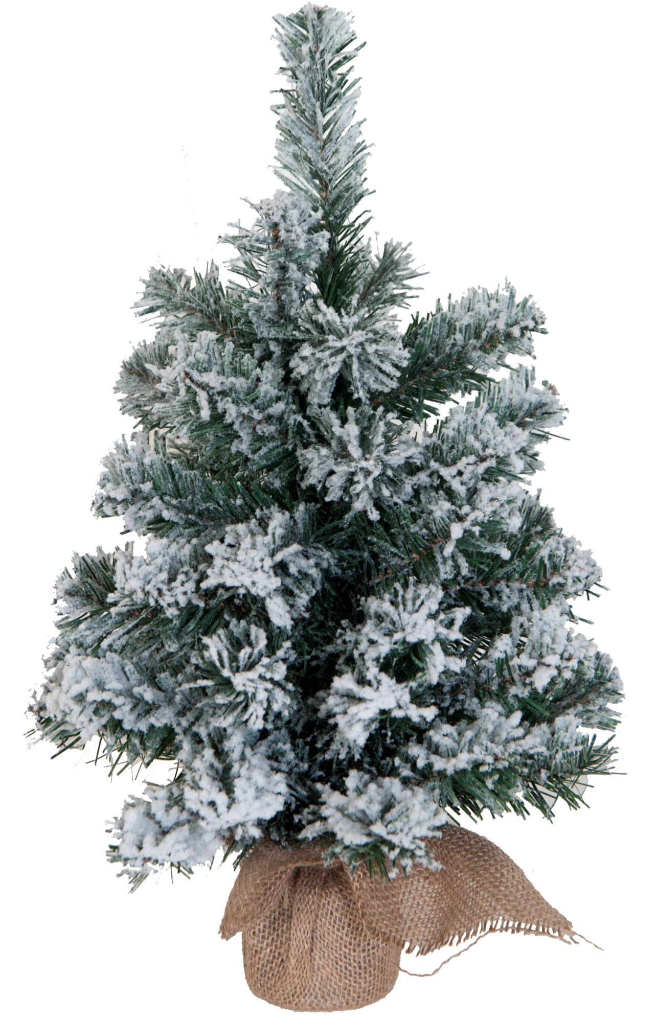 Χριστουγεννιάτικο Επιτραπέζιο Δέντρο Χιονισμένο, με Σακί (43cm) Ύψος: 43 cm Φύλλωμα: Κλασσικό – Τρέσα Χρώμα: Χιονισμένο (Πράσινο) Κλαδιά: Ενσωματωμένα Αριθμός Φύλλων: – Κορμός: Μεταλλικός Βάση: Σακί (Λινάτσα) Μέγιστη Διάμετρος: – 25 cm
