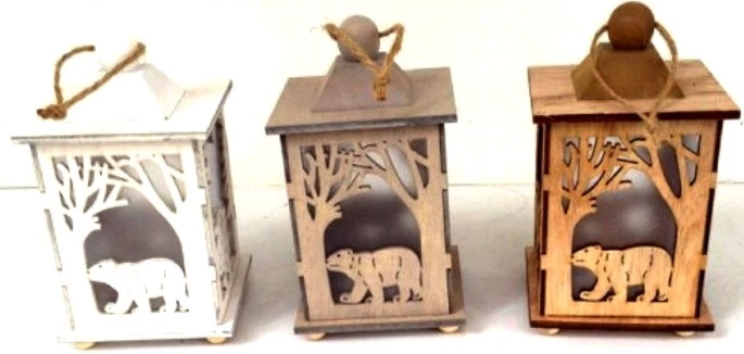 Χριστουγεννιάτικο ξύλινο φαναράκι με φώς 10x10x17.5 εκ 3 χρώματα Διακοσμιτικό φαναράκι από ξύλο με Χριστουγεννιάτικες φιγούρες.