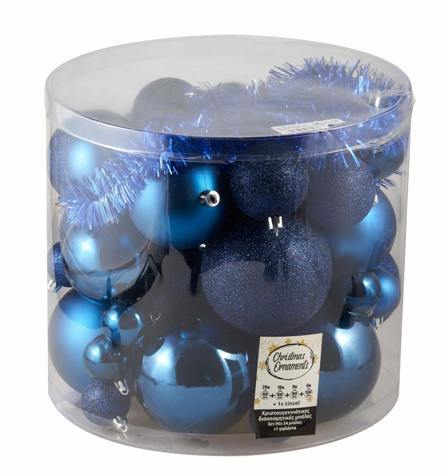 Epam Χριστουγεννιάτικες Μπάλες Πλαστικές σετ 54 σε 4 Μεγέθη Μπλε Ass (04.TB-S54/BL)