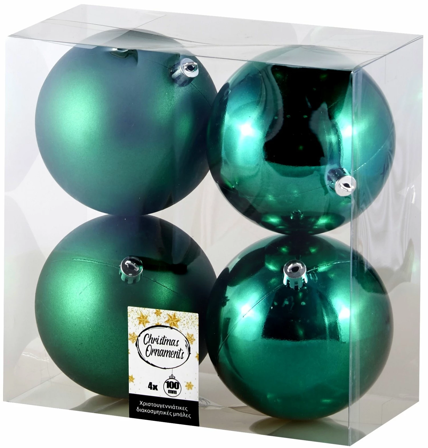 Χριστουγεννιάτικη Μπάλα Πλαστική 10εκ. Σετ 4 Σμαραγδί