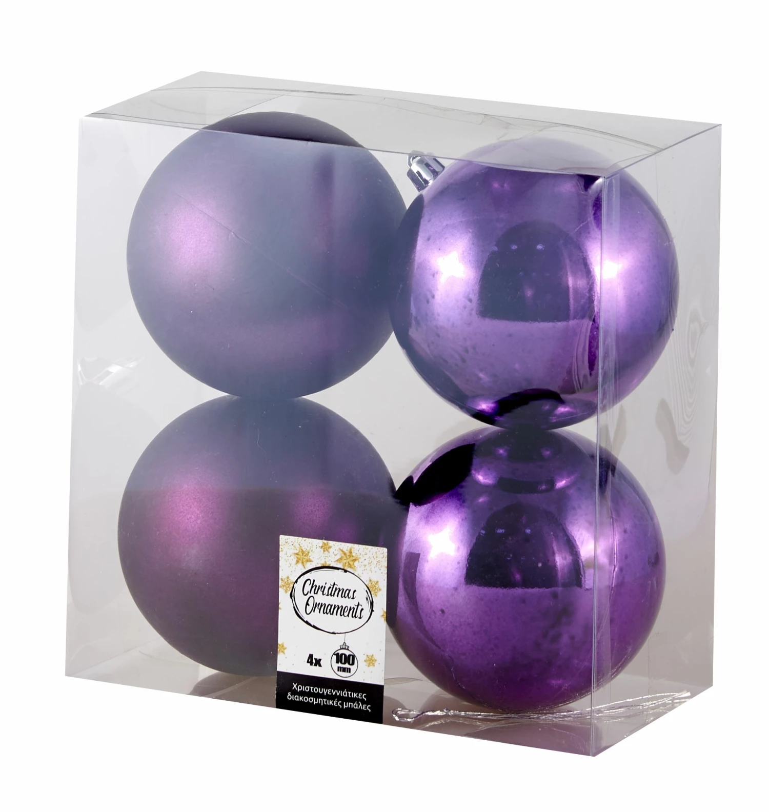 Χριστουγεννιάτικη Πλαστική Μπάλα 10 εκ σετ 4 τμχ Μωβ