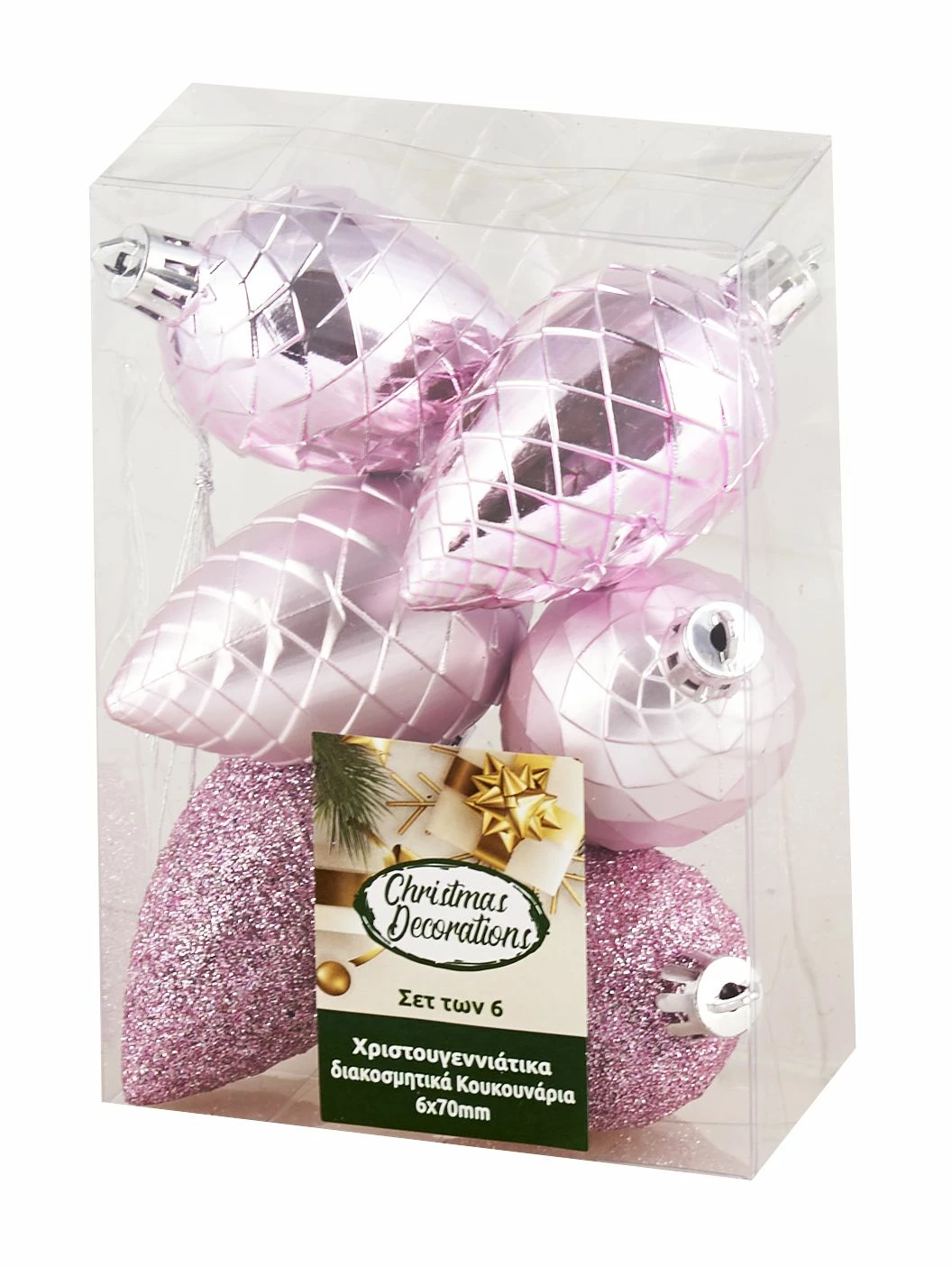 Χριστουγεννιάτικο Κρεμαστό Κουκουνάρι Ροζ 7 εκατοστών σετ 6 τμχ